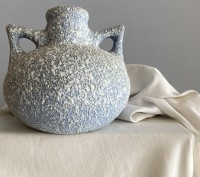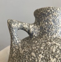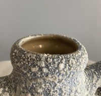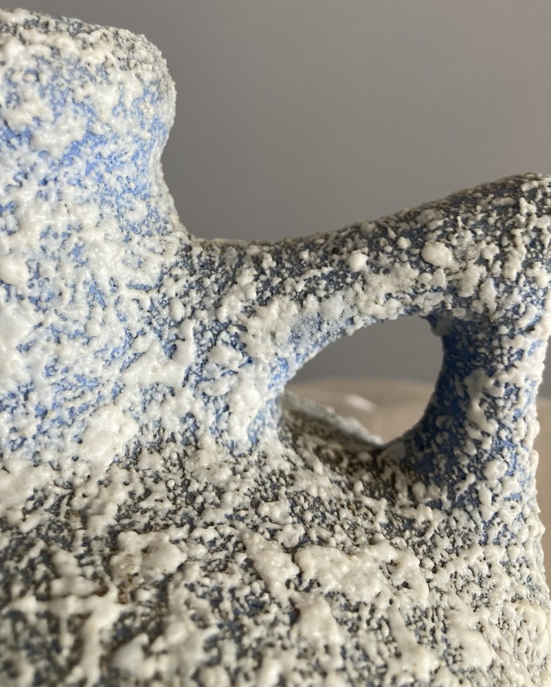 Vase bas, deux anses, email crispé blanc sur fond ciel