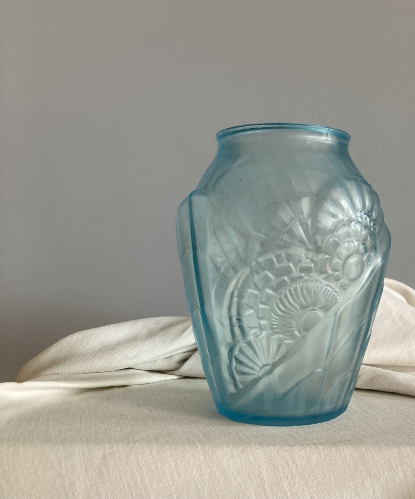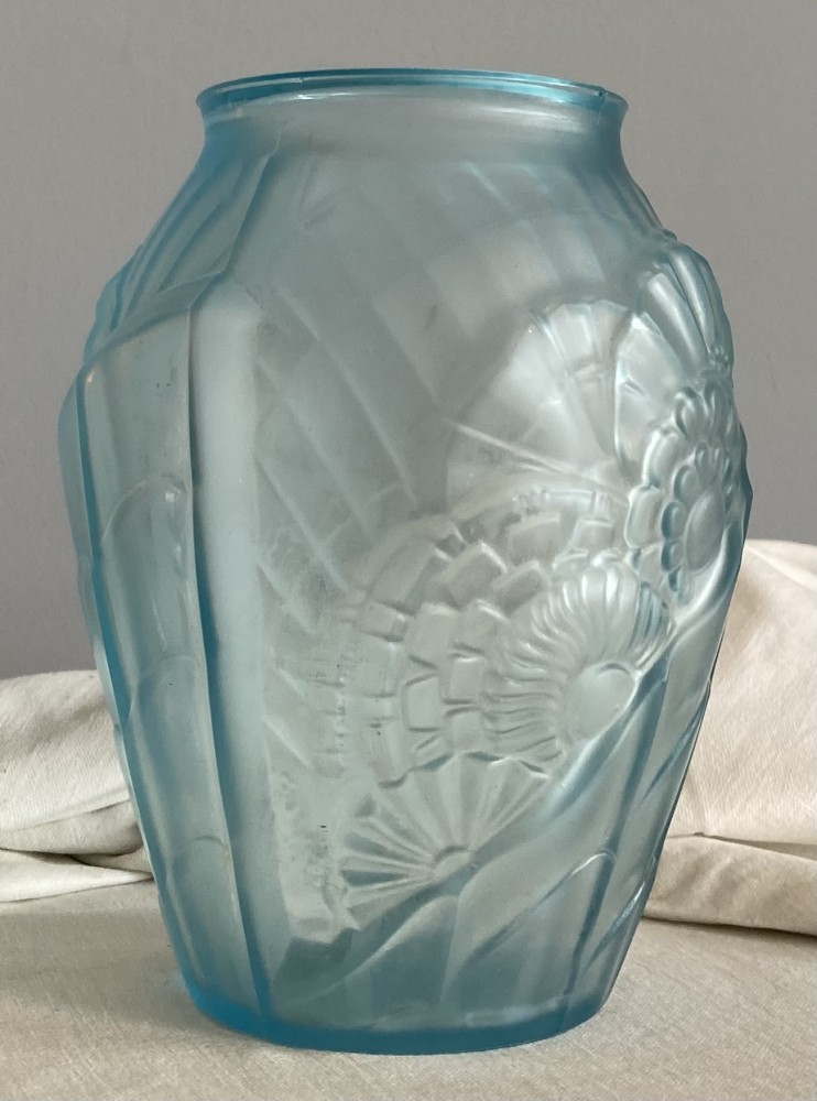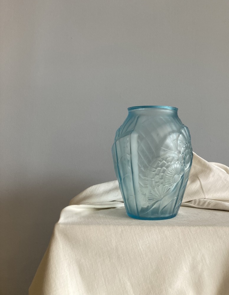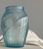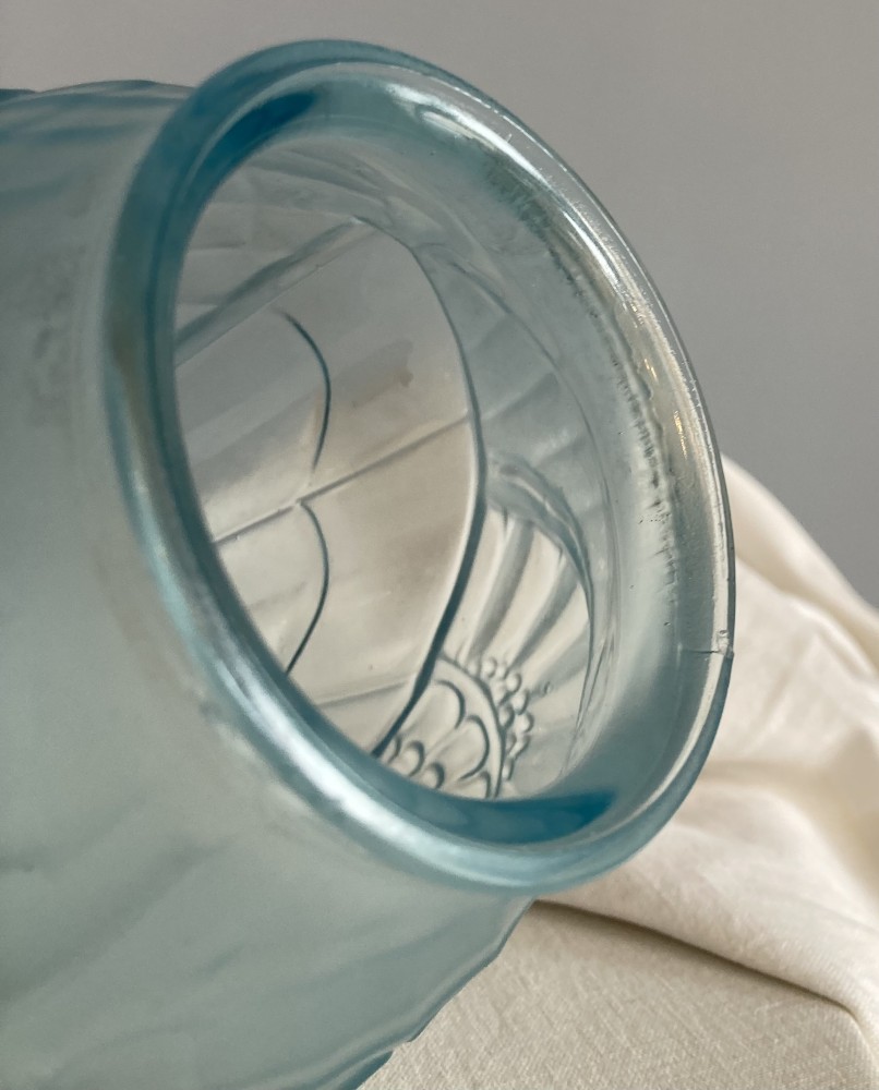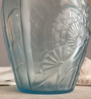 Vase Bleu givré aux motifs Art-déco de la Manufacture Souchon-Neuvesel